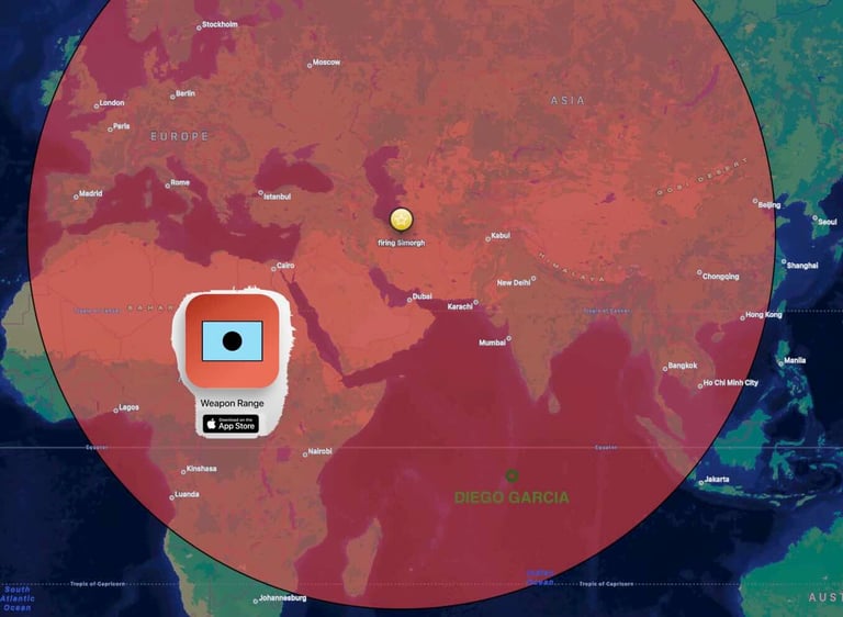 Análisis del fallido ataque con misiles a Diego García, a una distancia de 4.000 km de Irán. Misil Kormashar con carga explosiva limitada o Simorgh (Safir-2) utilizado para lanzar satélites. Esta capacidad de alcance permite que Irán llegue a Europa y Asia.